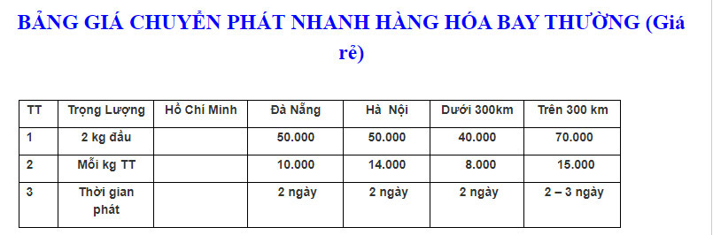 Bảng giá chuyển phát bay Hồ Chí Minh-0905 683 146
